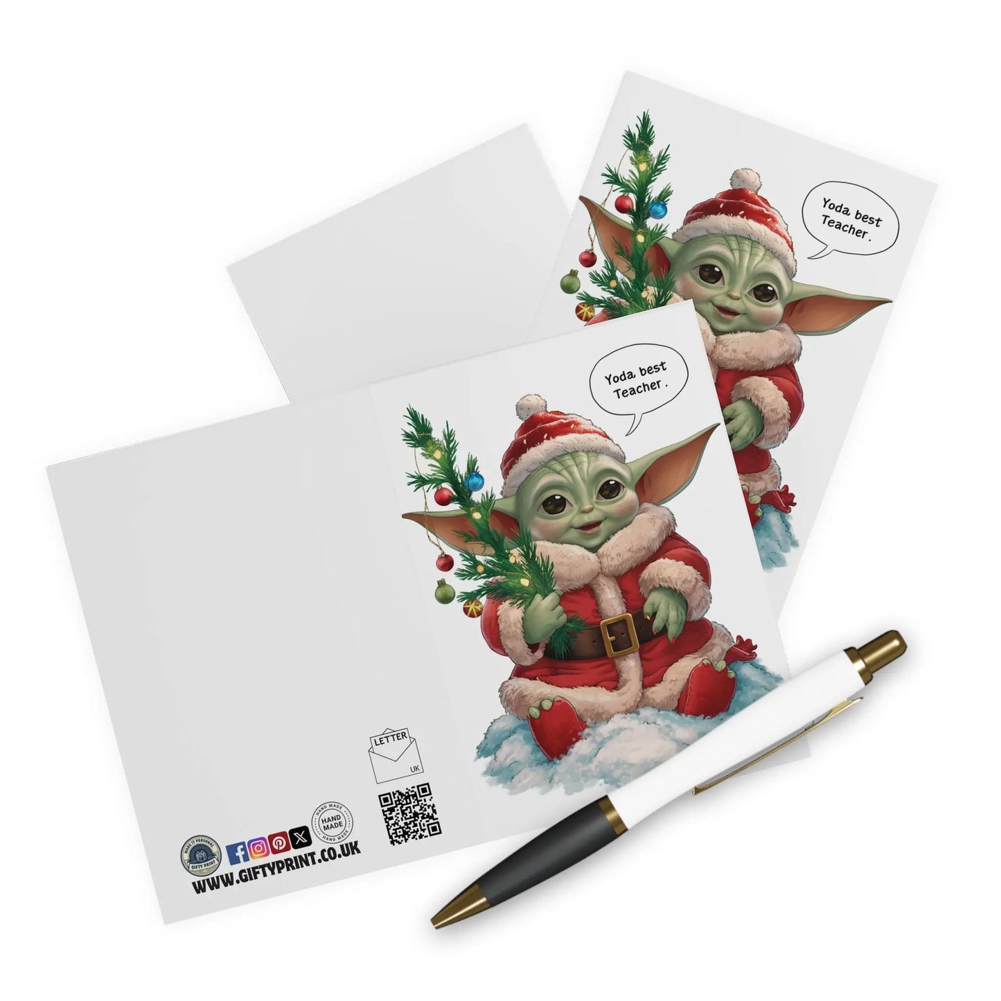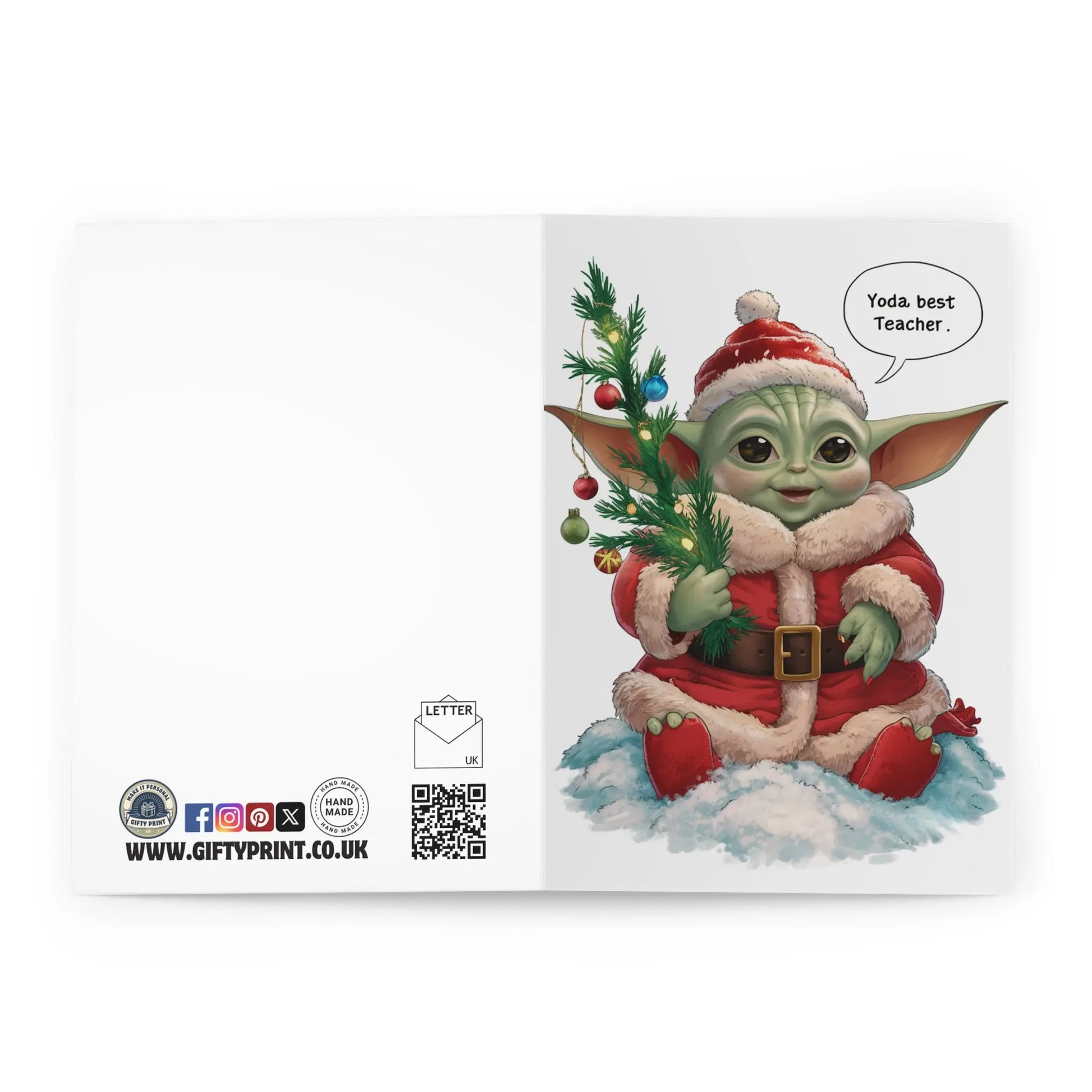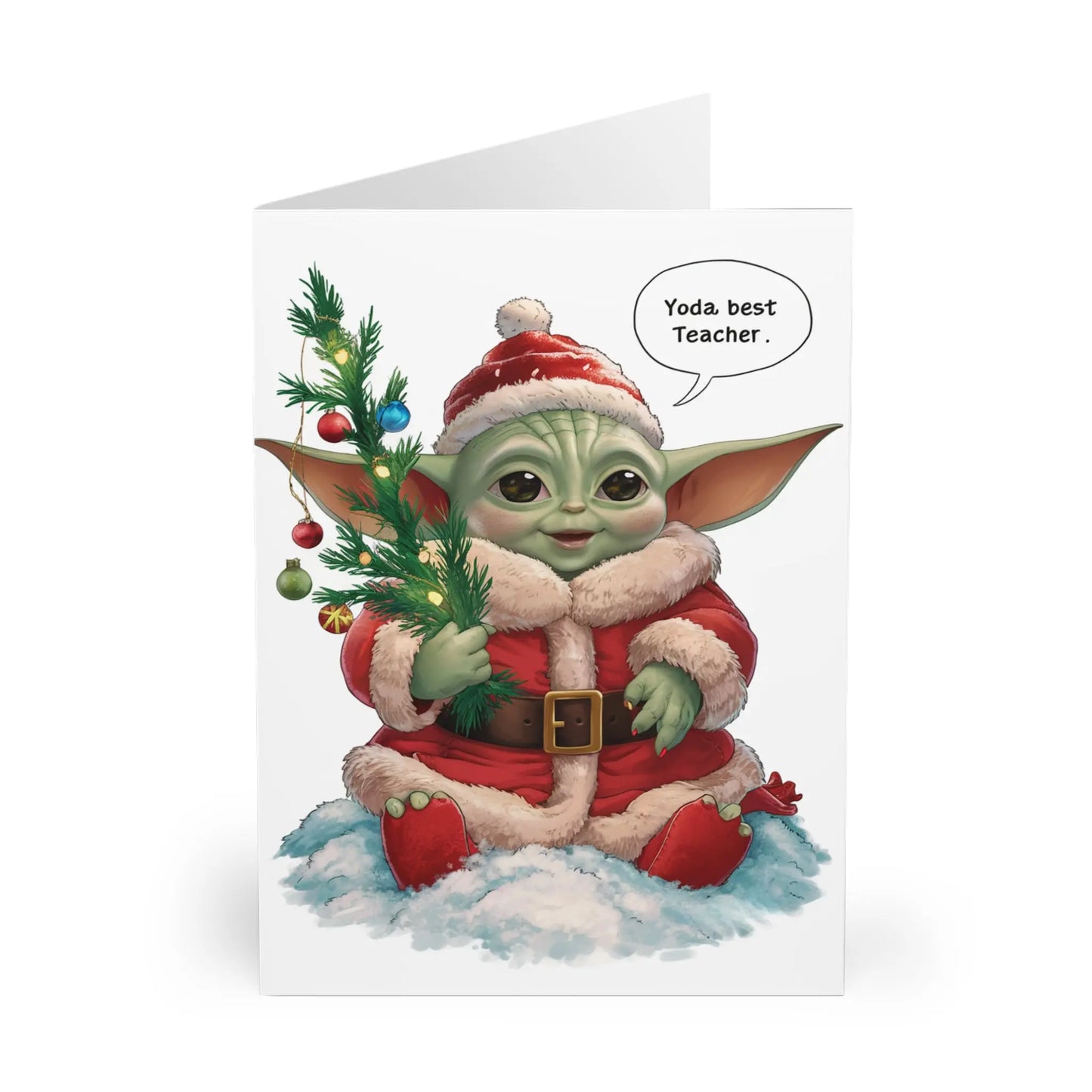 Teachers Christmas Card, Get ready to spread holiday cheer and appreciate your teacher with this Baby Yoda Best Teacher Santa Christmas Card! With its adorable design and heartfelt message, it's the perfect way to show your gratitude. Your teacher will surely love it (almost as much as Baby Yoda loves his soup)!