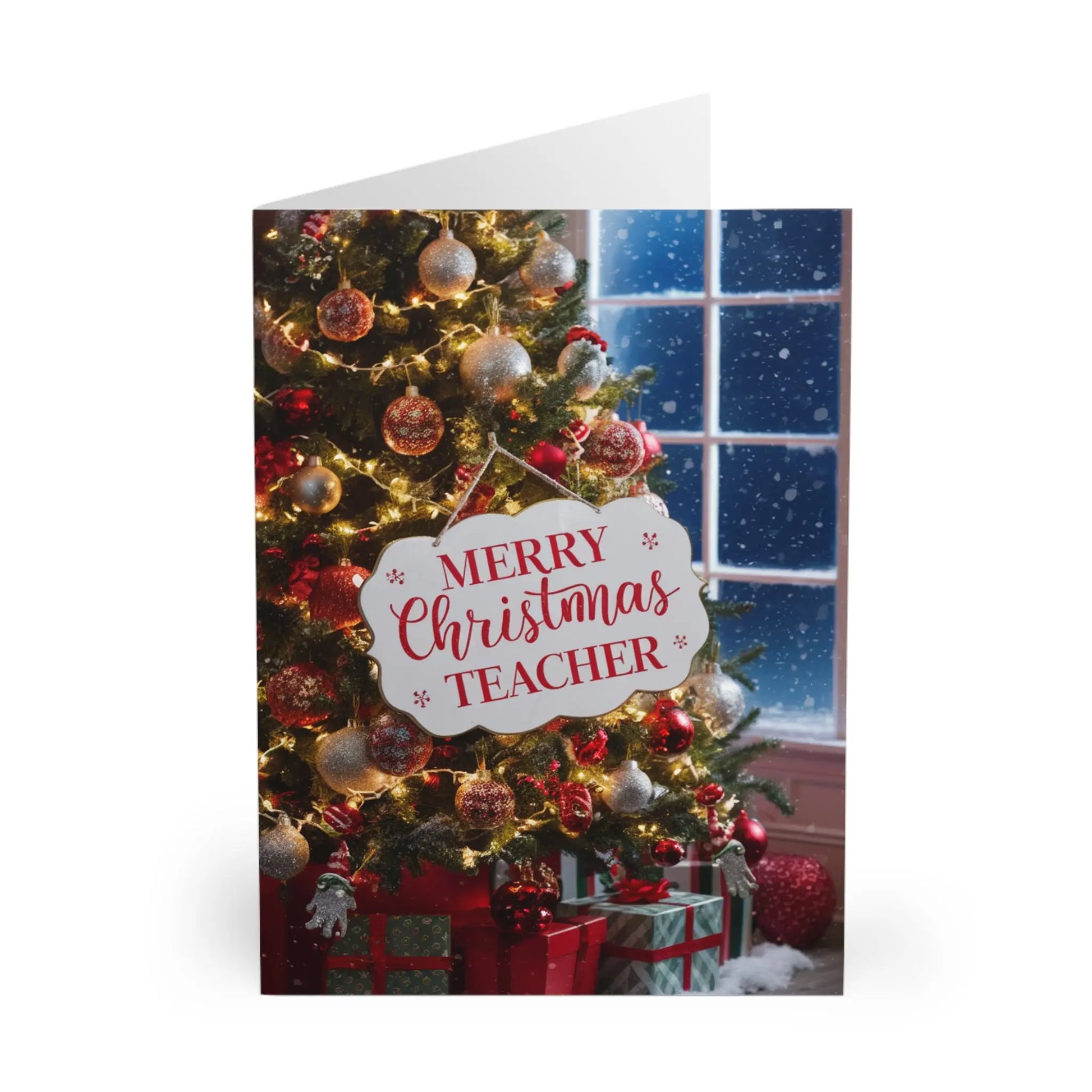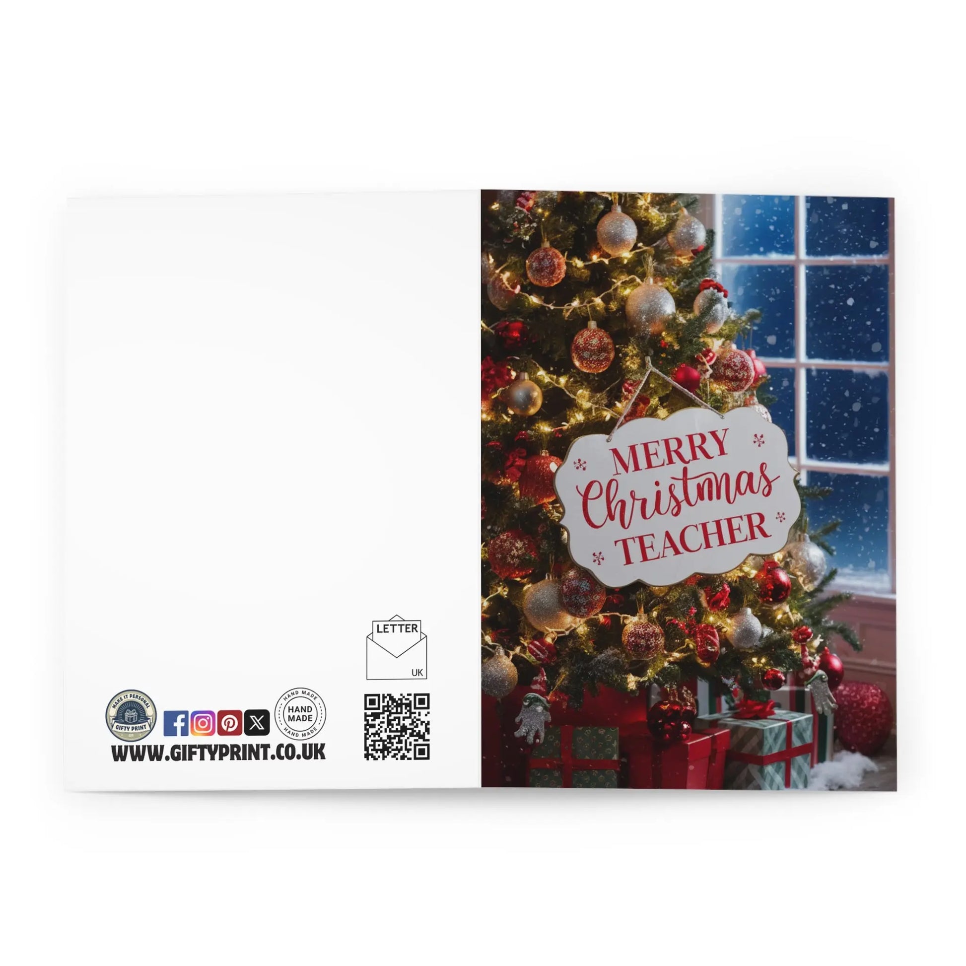Teachers Christmas Card, Spread holiday cheer to your favourite teacher with this Merry Christmas Teacher Christmas Tree card. Show your appreciation for all their hard work and dedication in a fun and festive way. The perfect way to say 'thank you' this holiday season!