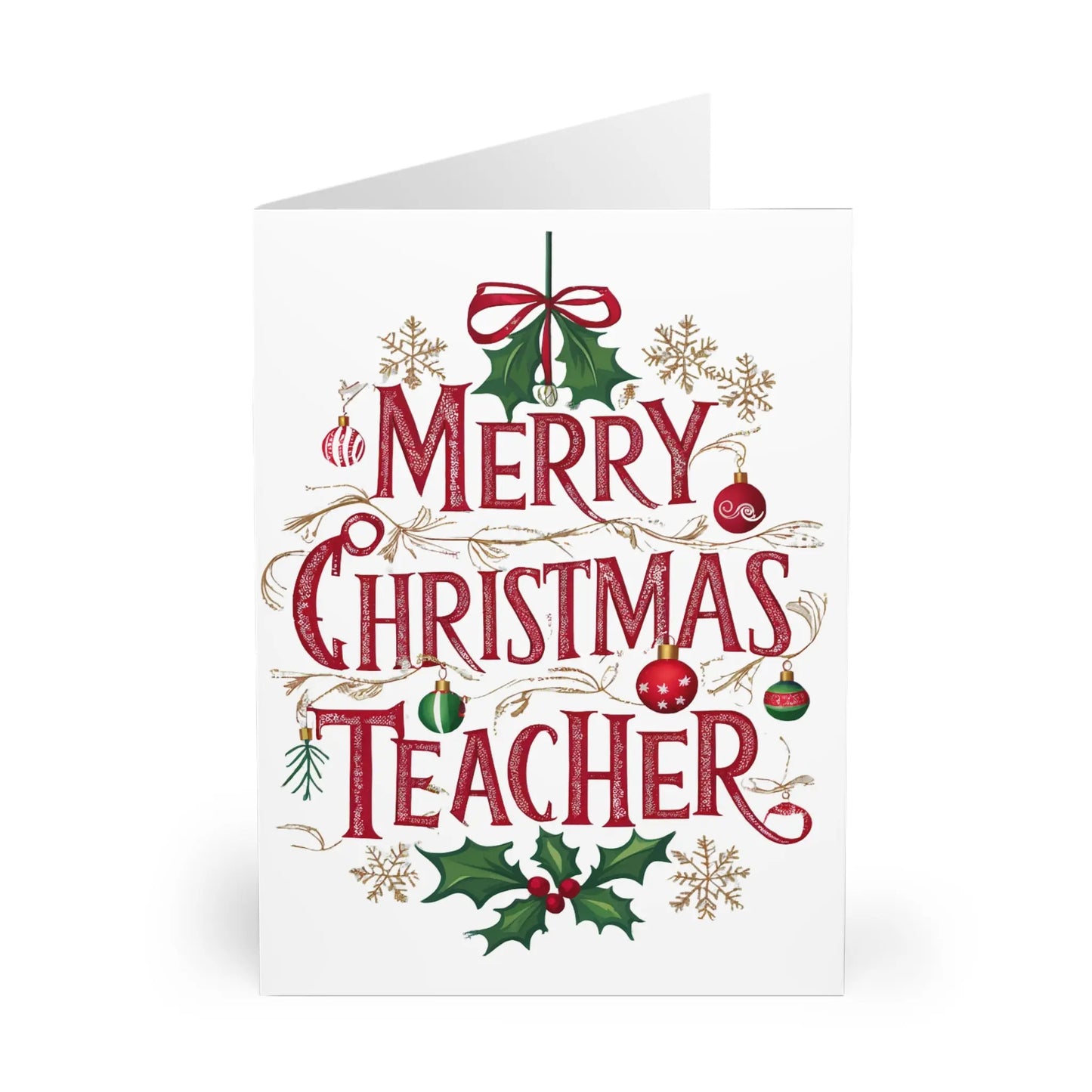 Product Details For Teachers Christmas Card Merry Christmas Teacher Holly