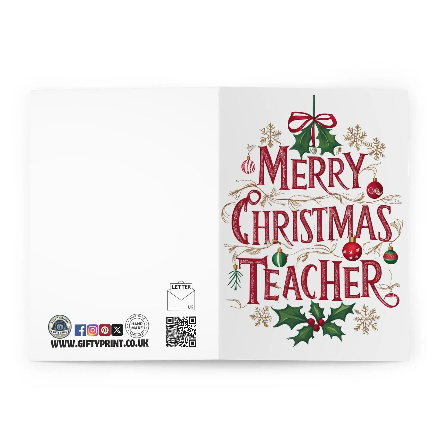 Teachers Christmas Card, Thank your favourite teacher this holiday season with our Merry Christmas Teacher Christmas Card! Featuring a festive holly design, this card is the perfect way to show your appreciation. Happy Holidays!