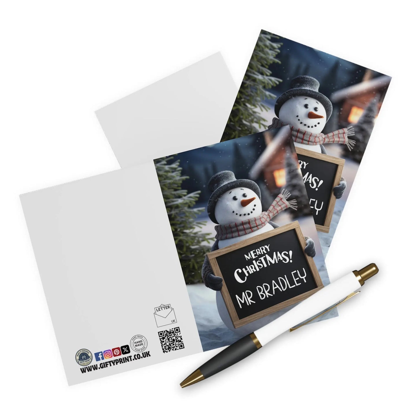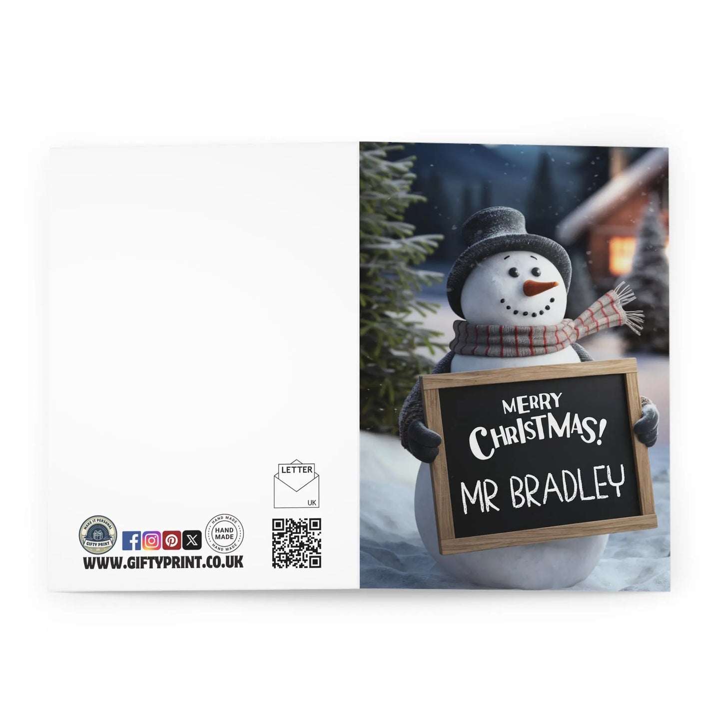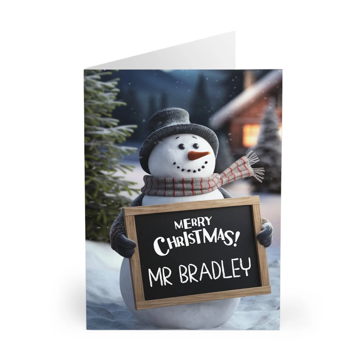 Teachers Christmas Card, Surprise your favourite teacher with this personalised snowman Christmas card! Show them how much you appreciate their hard work and dedication with a special message. This fun and unique card will surely bring a smile to their face.