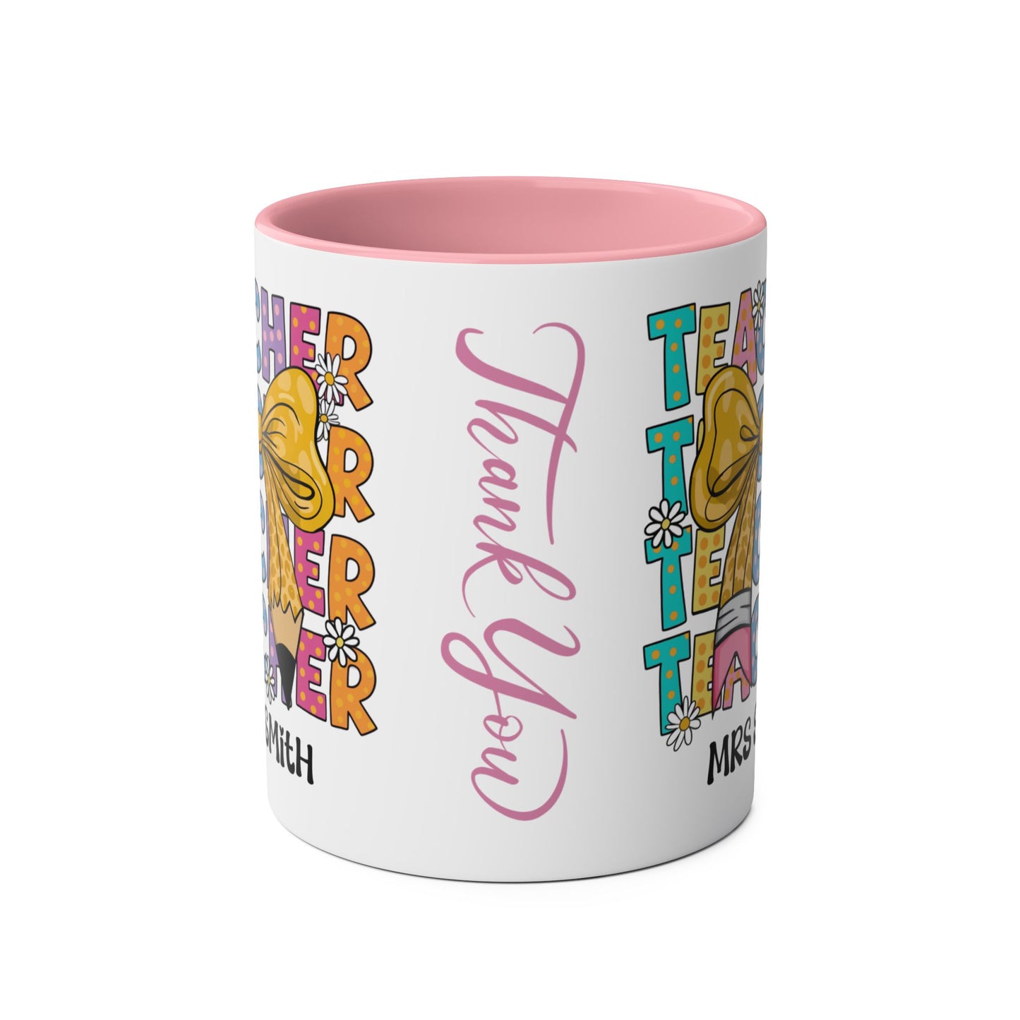 Teachers Gift Mug, Elevate your teacher appreciation with our sophisticated Golden Bow Personalised Pink Mug. Crafted specifically for educators, this elegant pink ceramic features a luxurious golden bow design and can be customised with the teacher's name for a thoughtful, professional touch. The perfect blend of functionality and personalised recognition for outstanding educators.