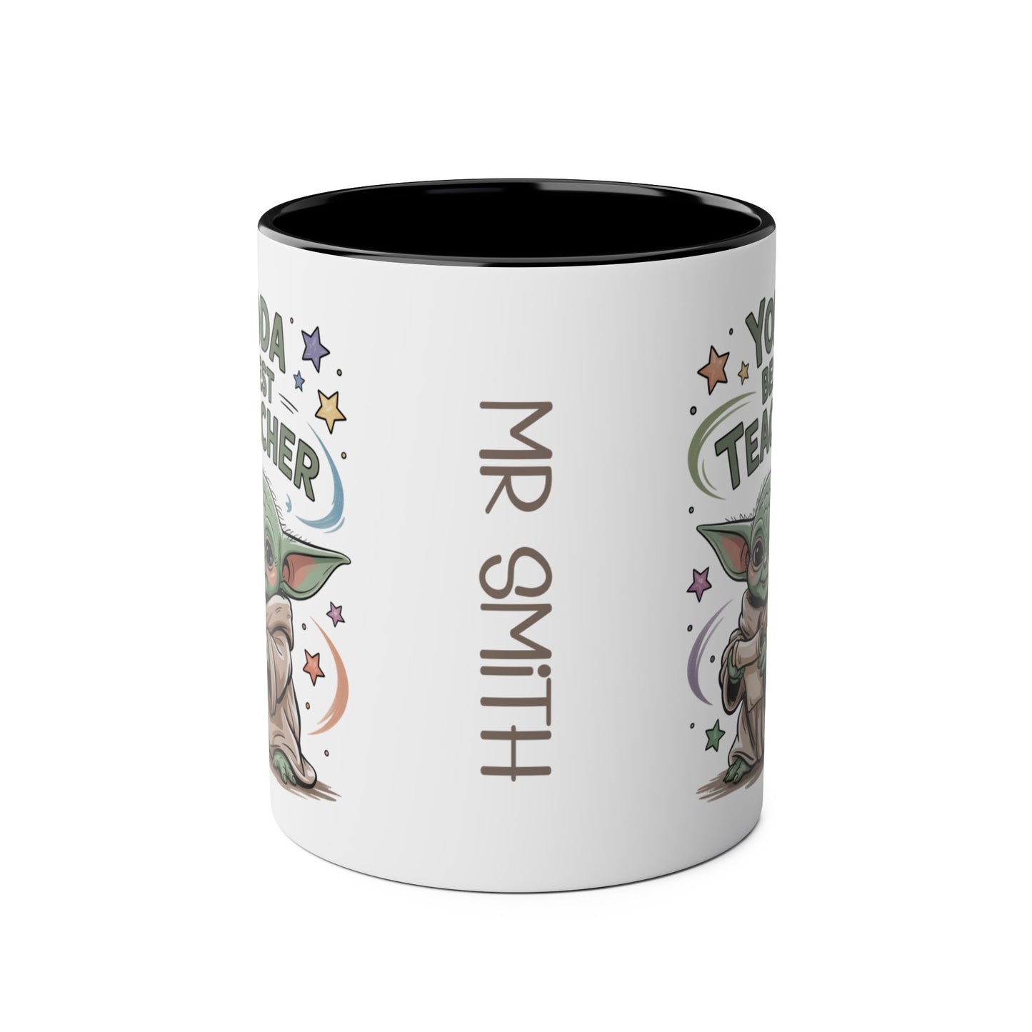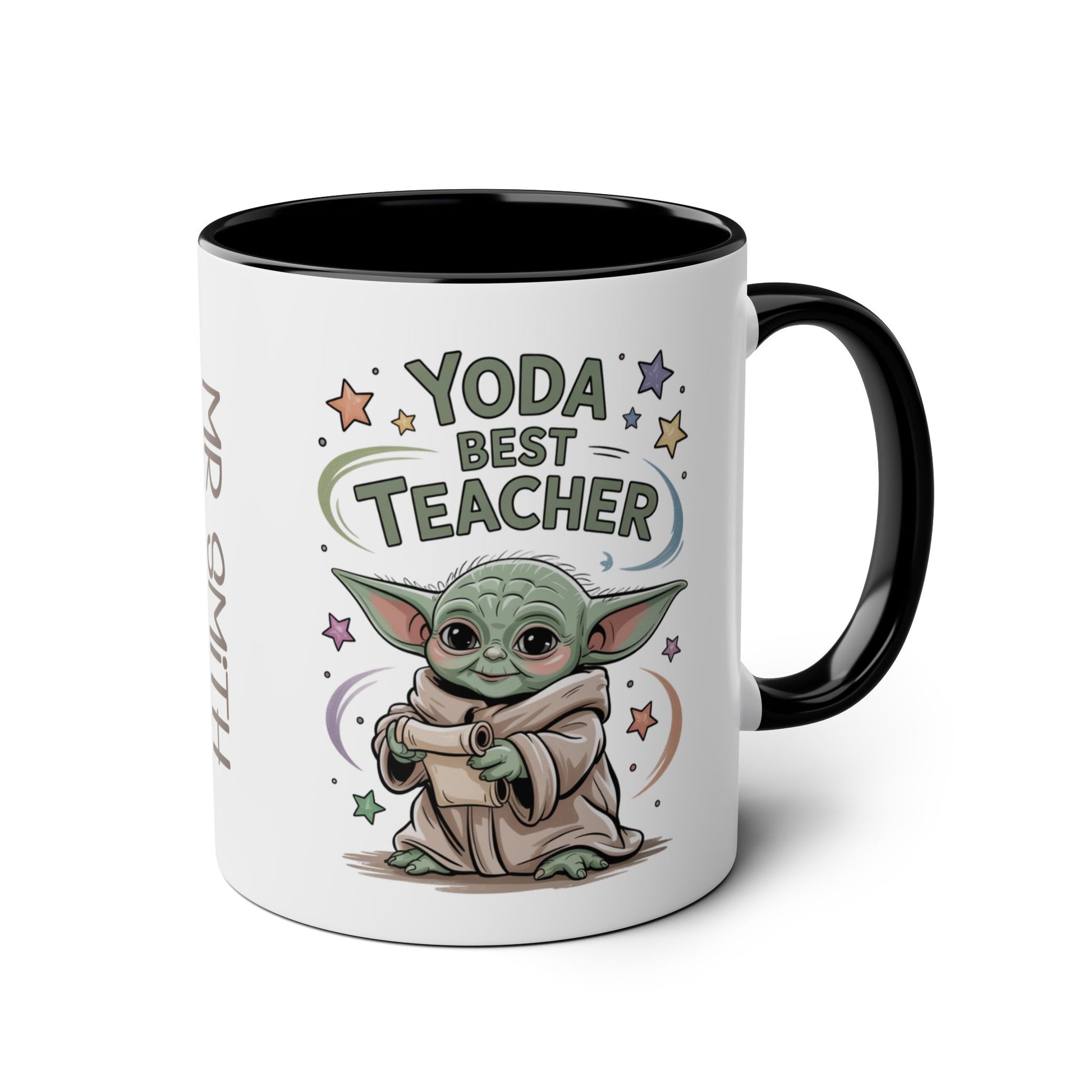 Teachers Gift Mug, Elevate your teacher appreciation with our premium "Yoda Best Teacher" personalised mug. Crafted from high-quality ceramic, this durable mug features a clever Star Wars-inspired design alongside your teacher's name for a truly unique gift. Perfect for daily use with its dishwasher-safe finish and generous capacity for their favourite hot beverage.