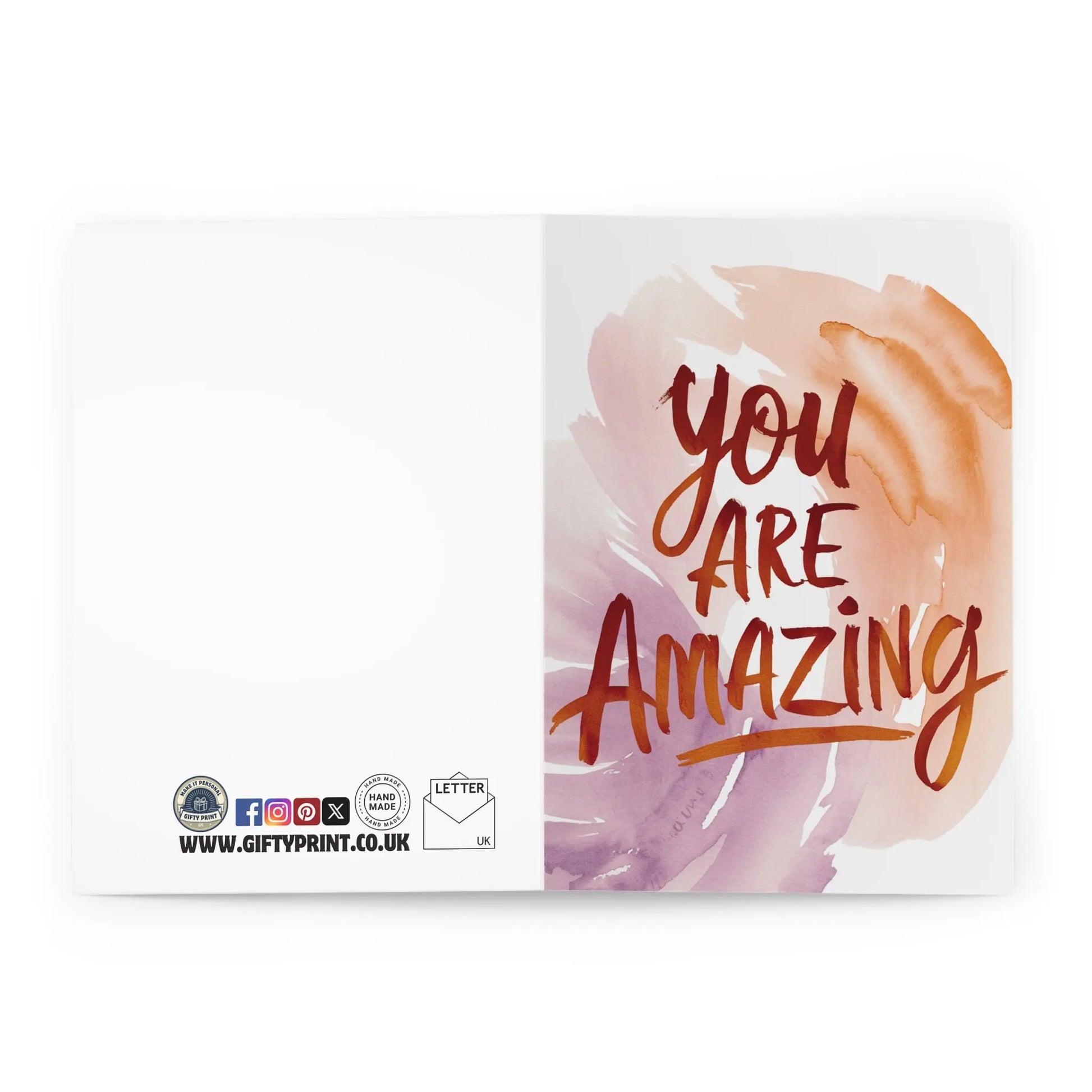 Thank You Card, Show someone how amazing they are with this Thank You card featuring a colourful watercolour design. Perfect for any occasion, this card will make them feel appreciated and loved. Say it with a touch of art and kindness. You are amazing, just like this card!