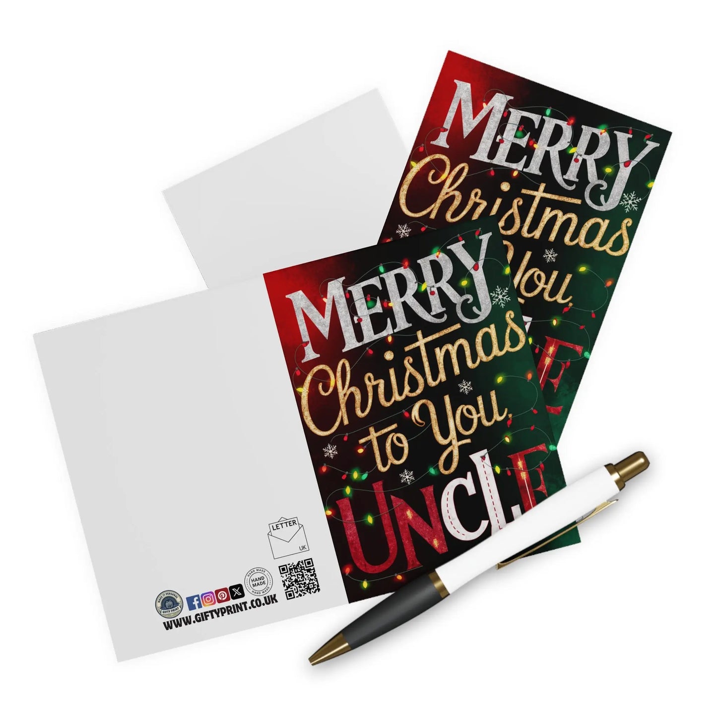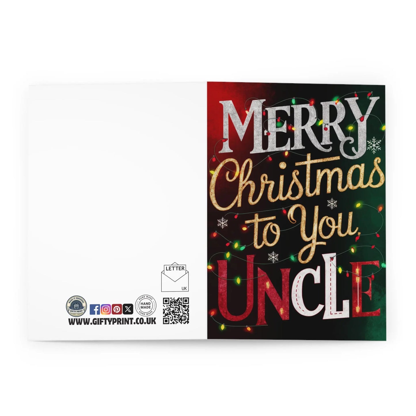 Uncle Christmas Card, Send love and holiday cheer to your favourite uncle with our Christmas Card. Featuring a festive design and a heartfelt message, it's the perfect way to show your appreciation this holiday season. Merry Christmas to you, Uncle!
