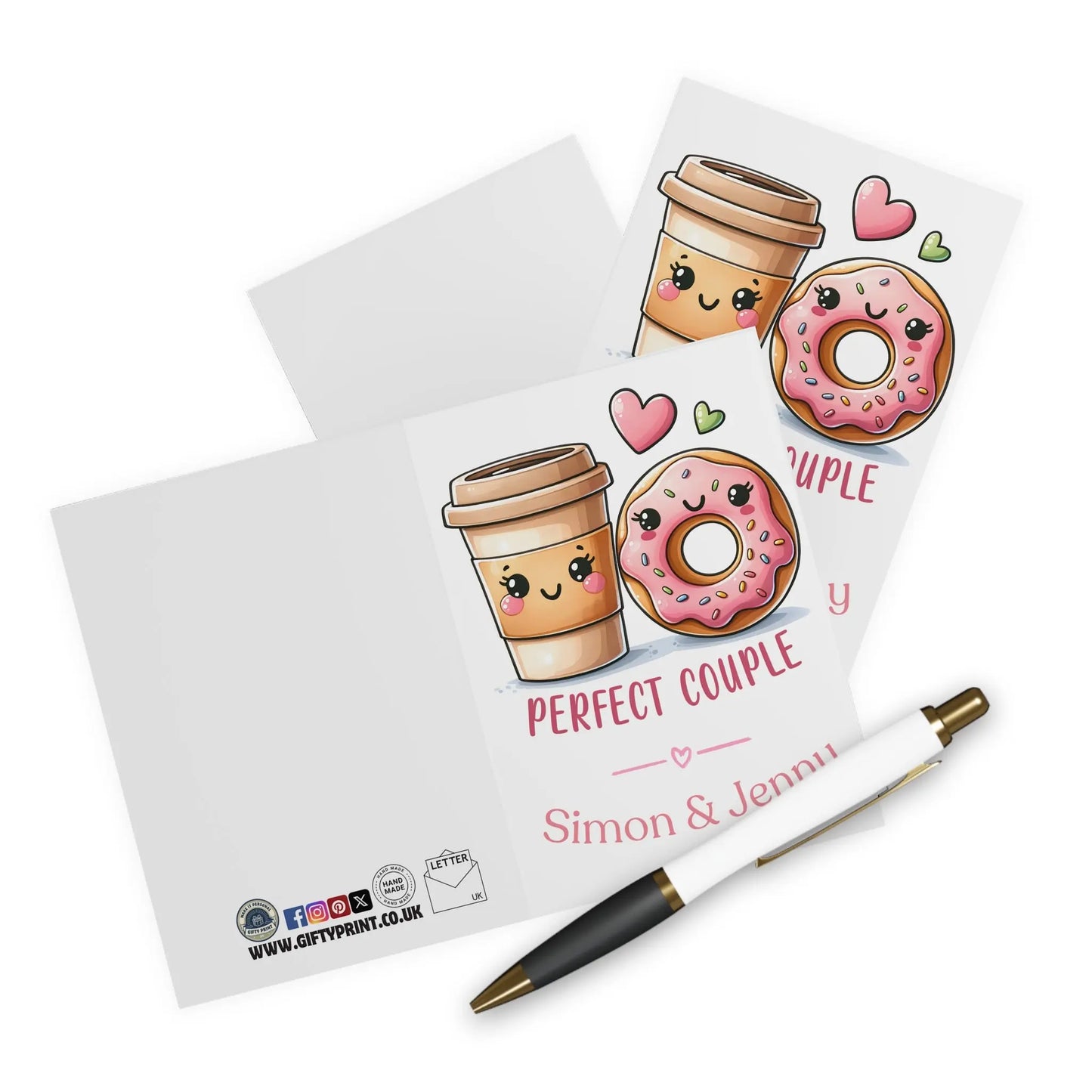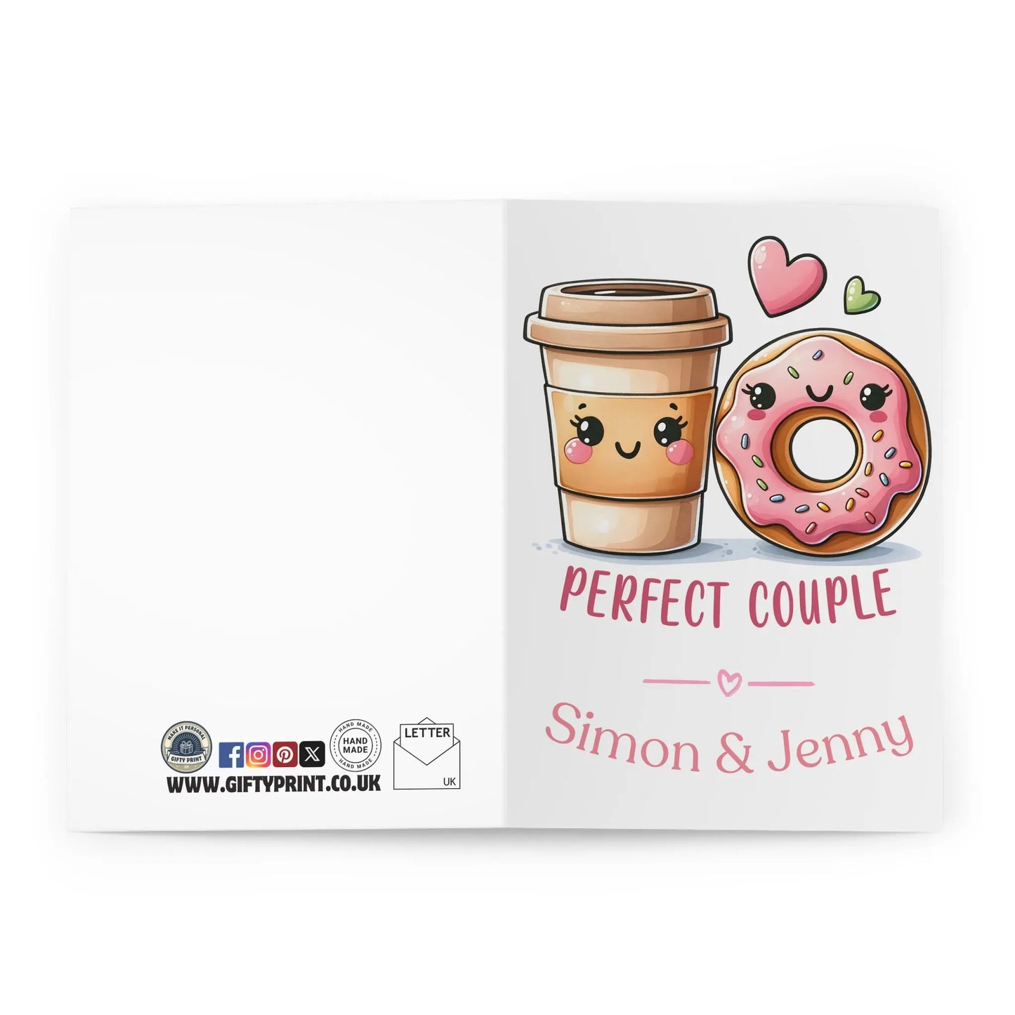 valentines day card, Spread some love and laughs this Valentine's Day with our Personalised Card for the Perfect Couple! Featuring a delightful coffee and doughnut design, add your own touch with a personalised names. The perfect gesture to show your special someone they're the perfect match for you!