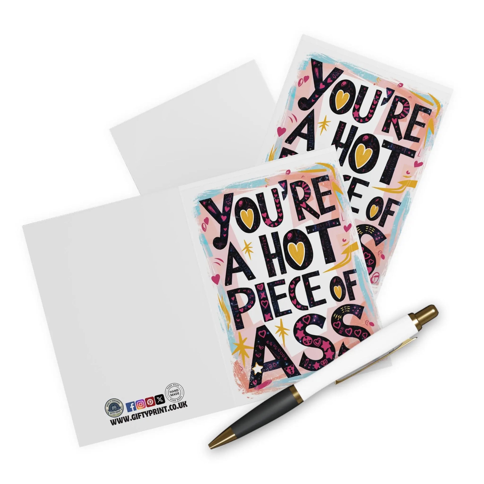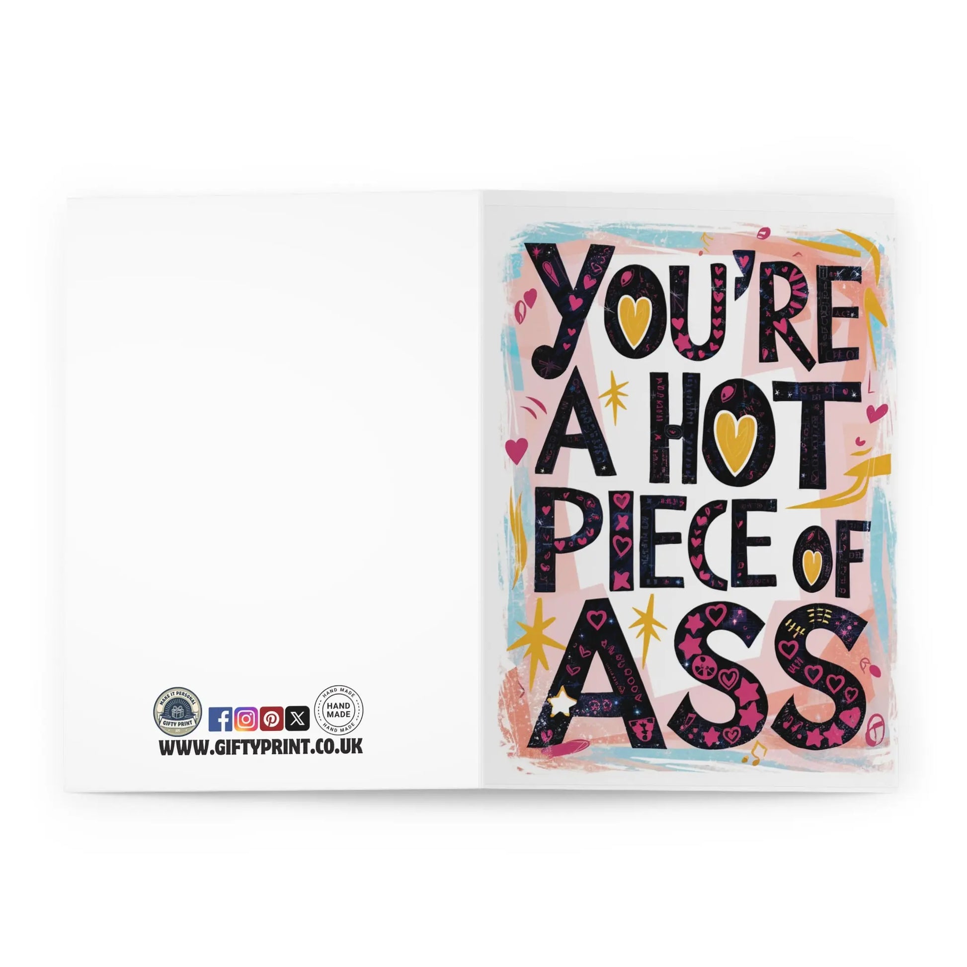 Valentines Day Card, Surprise your significant other with a fun and flirty Valentine's Day card that will have them blushing! Our "You're A Hot Piece Of Ass" card is the perfect way to show your love with a playful and humorous twist. Sure to bring a smile to their face and heat up the holiday.