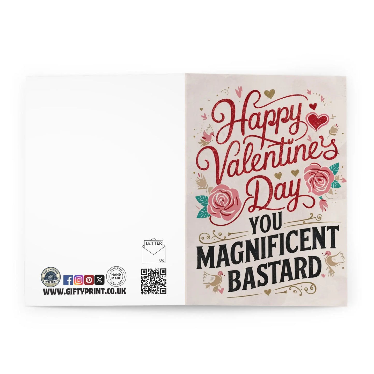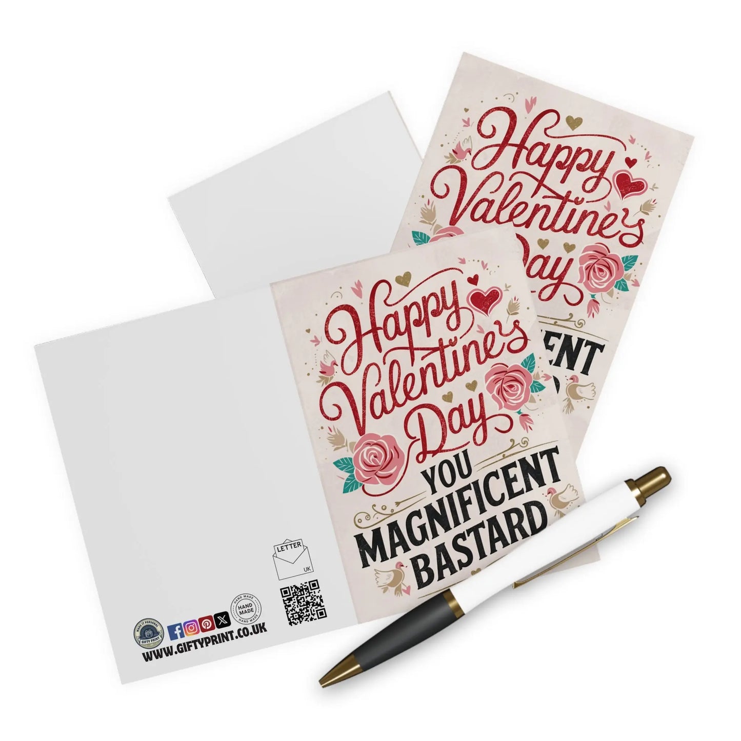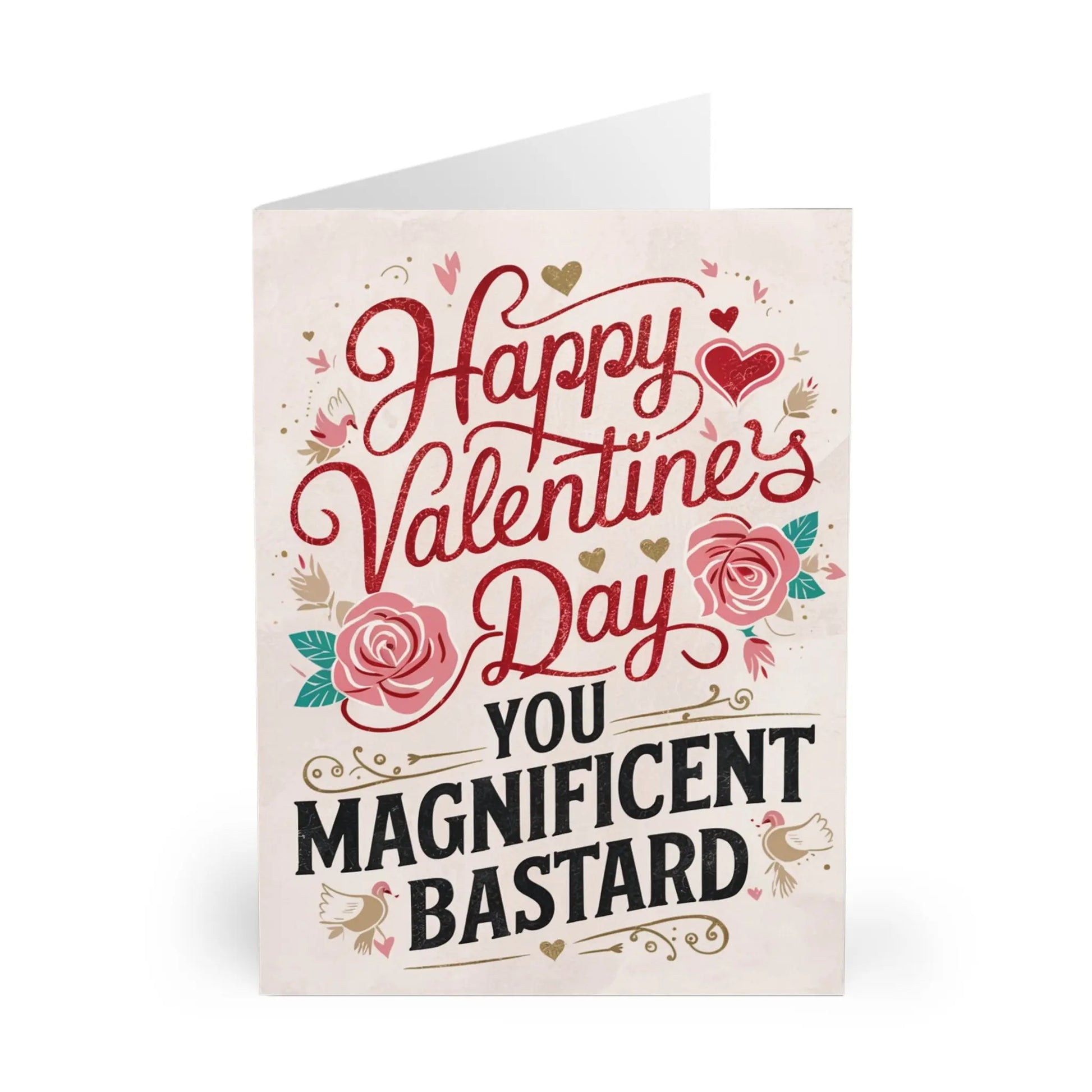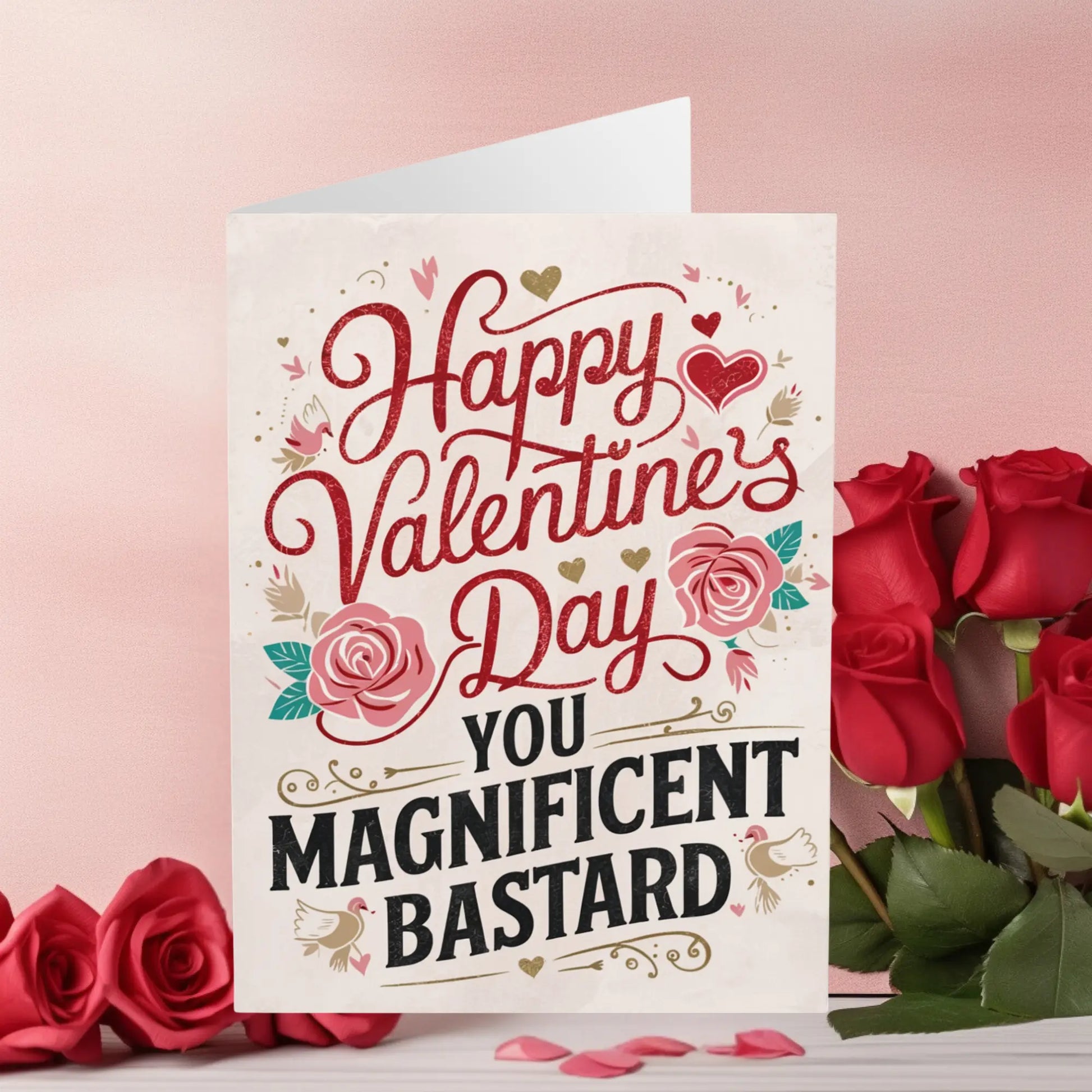 valentines day cards, You'll make their heart swoon with this Valentines Day card, featuring a playful message for that special someone. Show off your witty side with 'Happy Valentines You Magnificent Bastard'. The perfect way to make them laugh and feel loved this holiday!