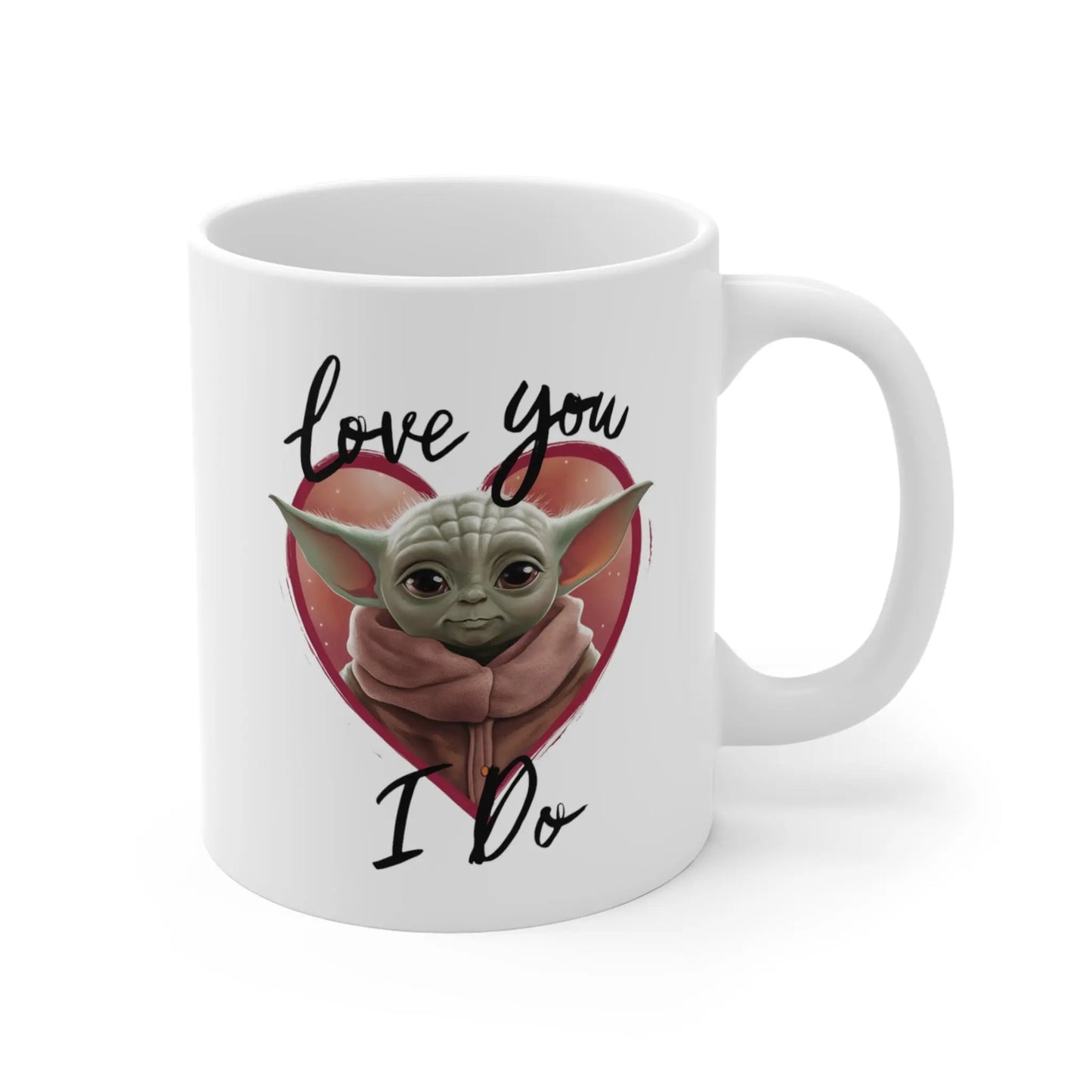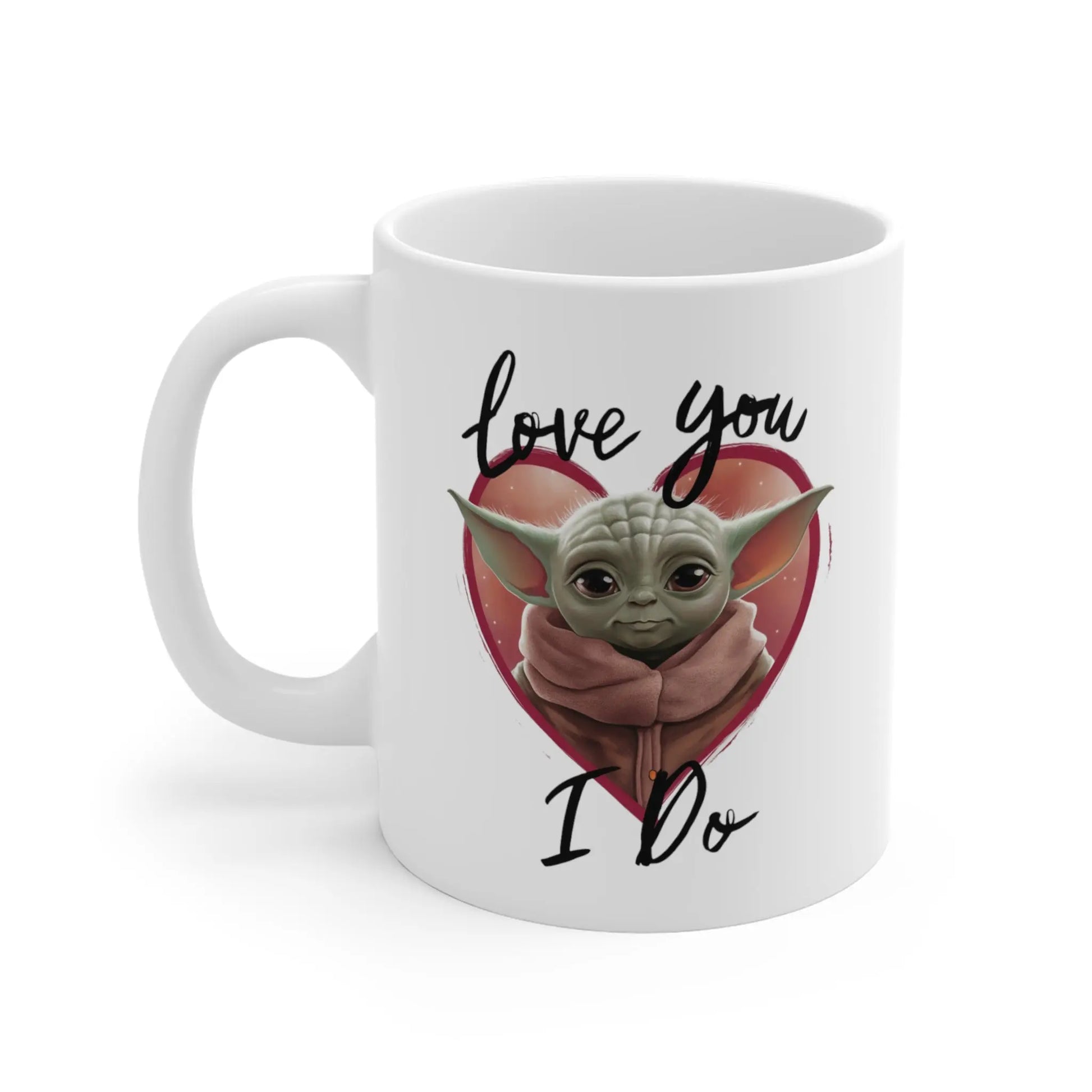 Valentines Day Mug, Share the love this Valentine's Day with our adorable Baby Yoda mug! Featuring the lovable character and the phrase "Love You I Do," this mug is the perfect gift for any Star Wars and Valentine's Day fan. Sip your morning coffee or hot chocolate with a touch of cuteness and humour.
