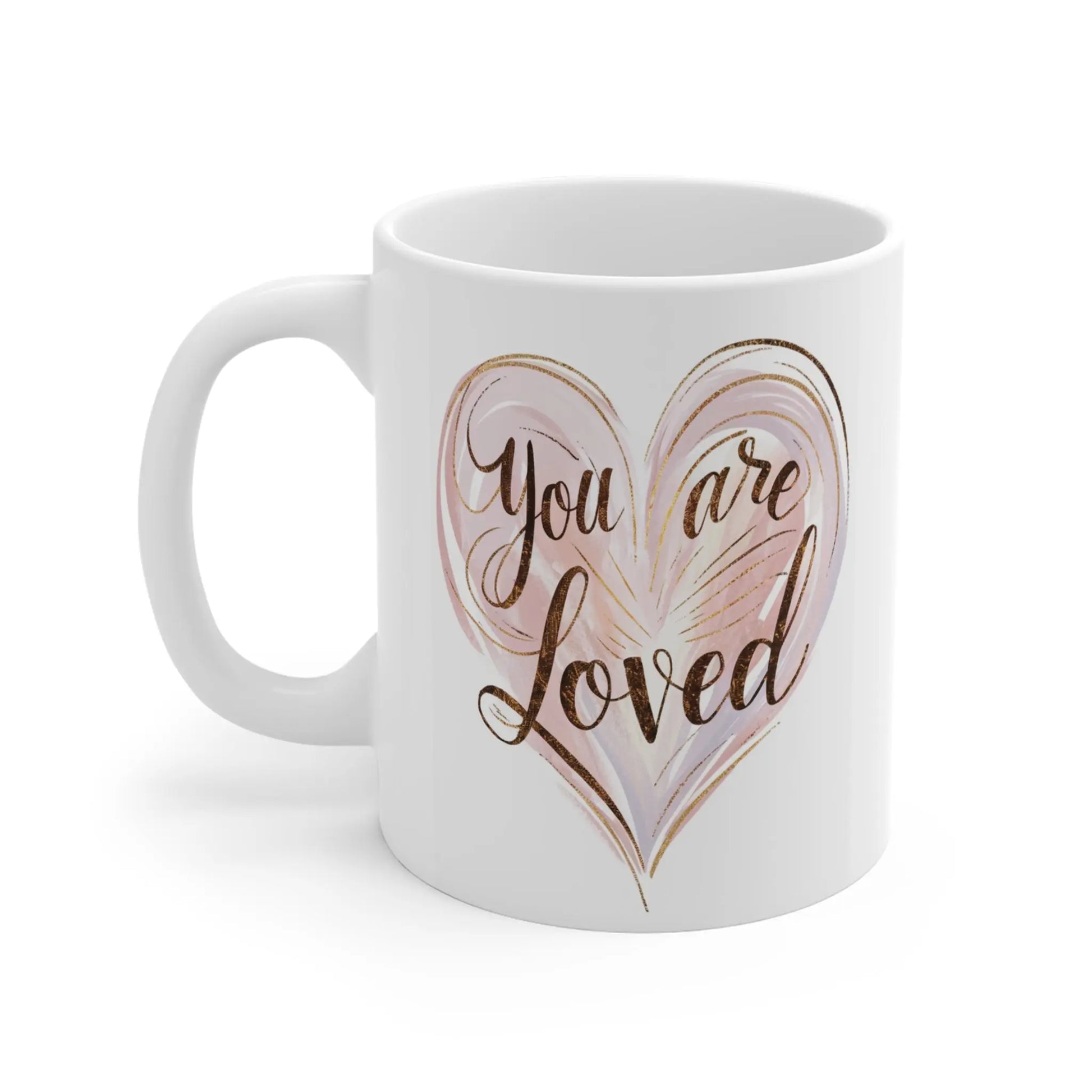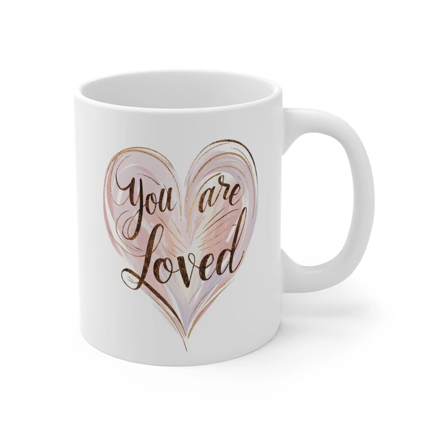 Valentines Day Mug, Spread some love this Valentine's Day with our "You Are Loved" pink heart mug! Made with high-quality materials, this mug is perfect for your morning coffee or tea. Show your loved one how much they mean to you with a sweet and playful message every day (without being too cheesy).