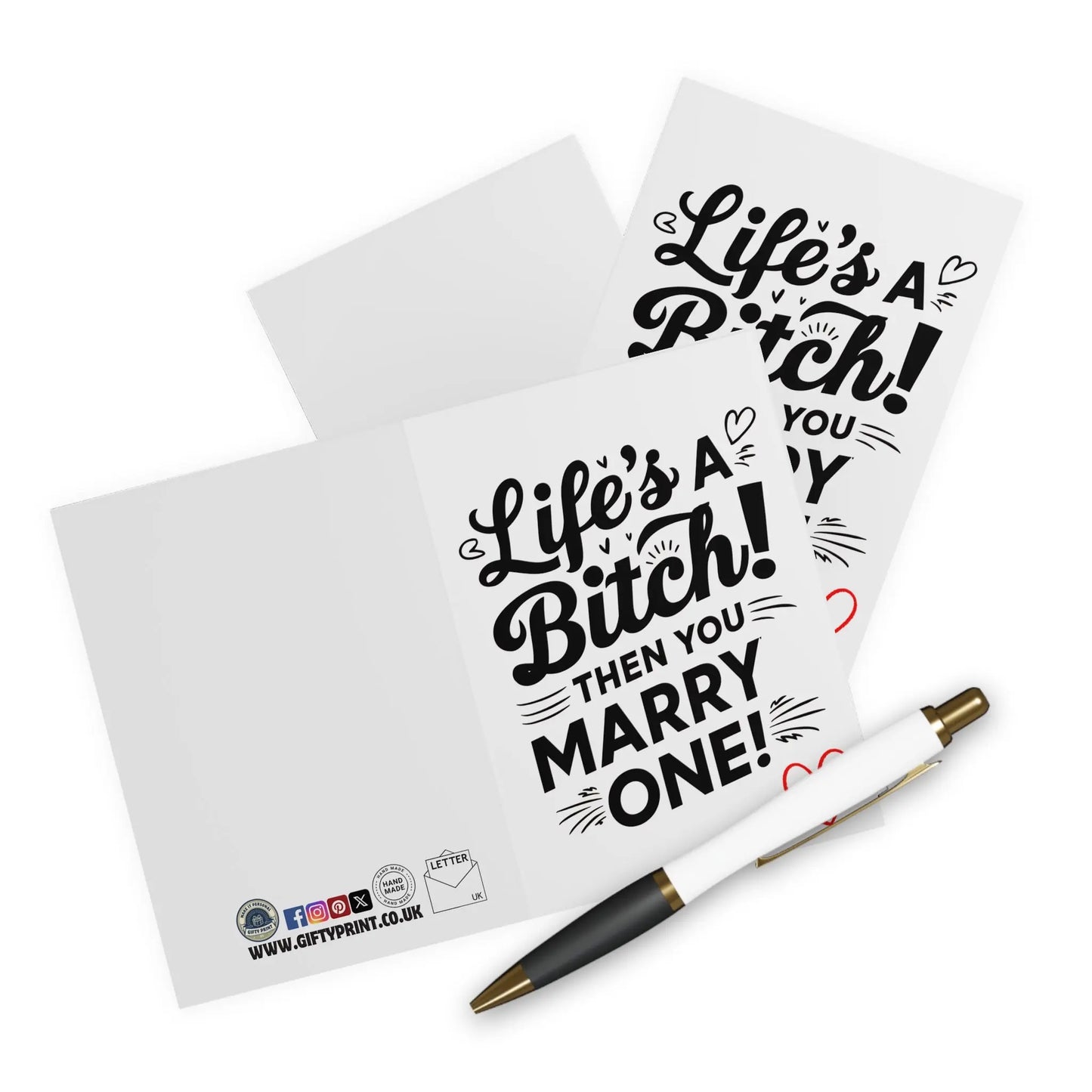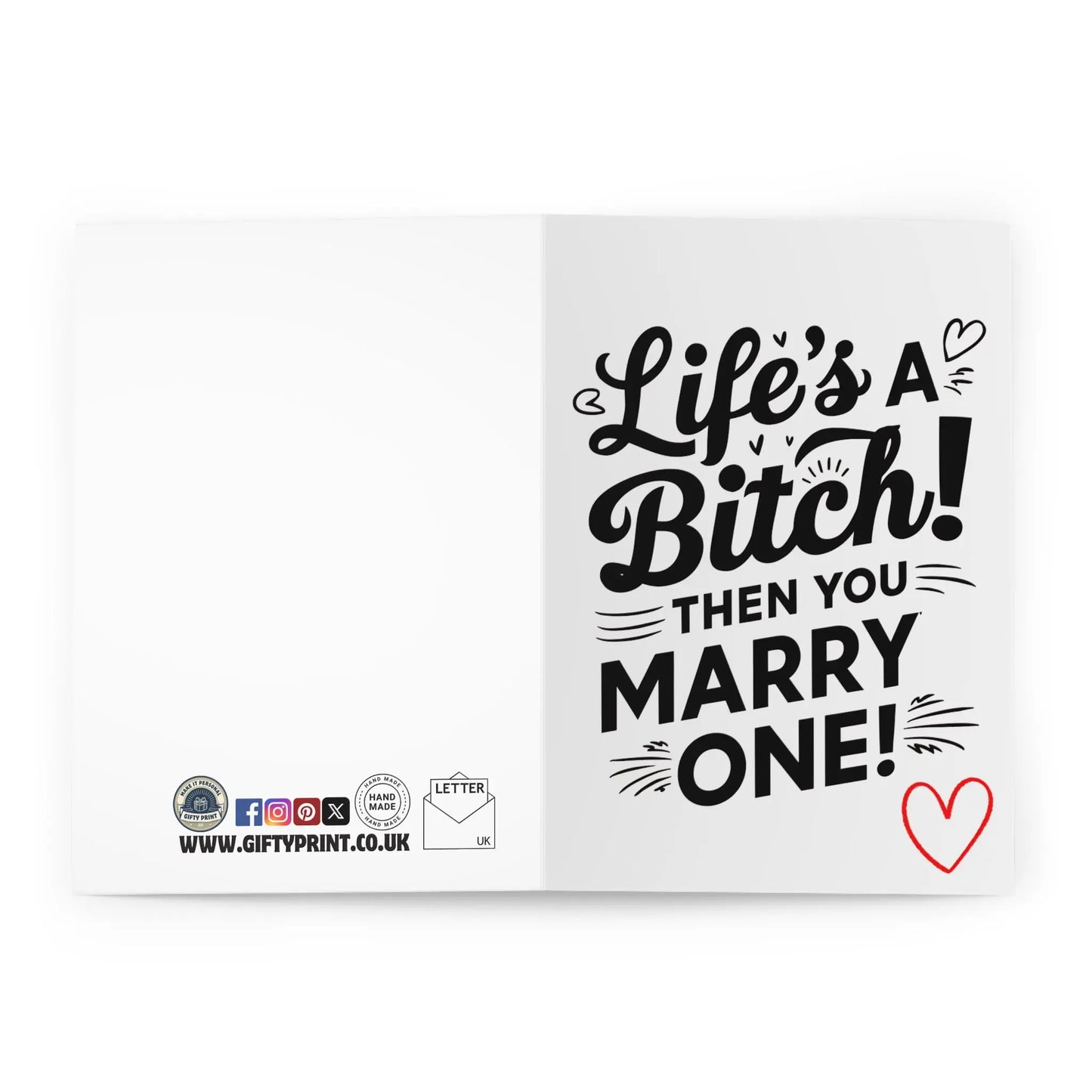 Get ready to make the newlyweds laugh with this unique wedding card! Featuring a clever play on words, this card will surely bring a smile to anyone's face. Show the happy couple that marriage may have its challenges, but it's all worth it in the end. (Congrats!)