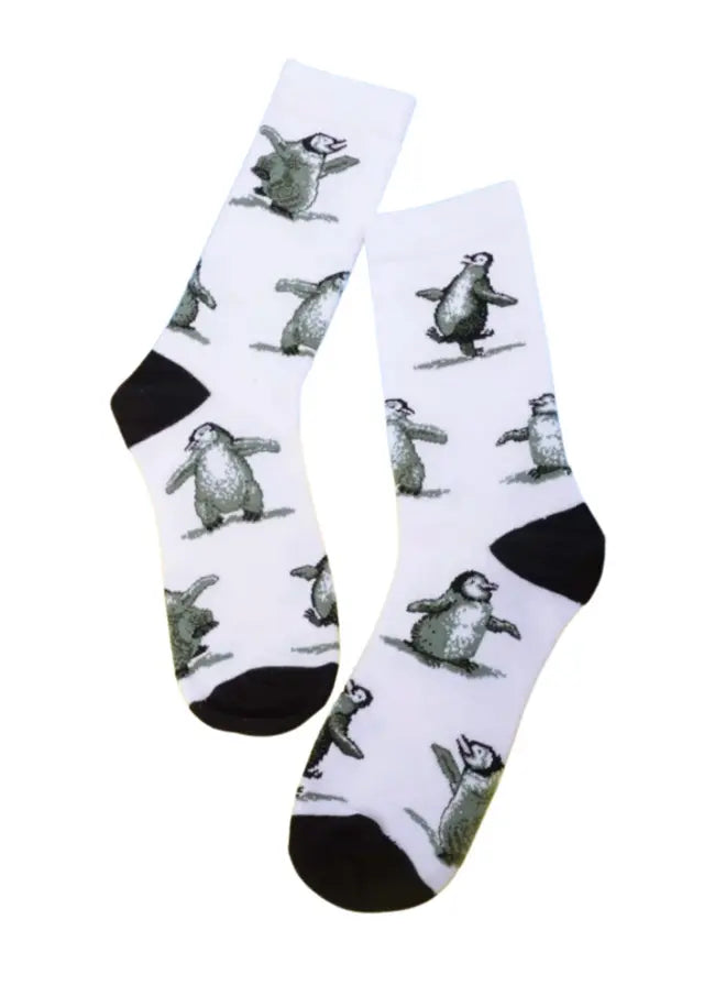White Penguin Socks, Step up your sock game with these adorable White Grey Black Cute Penguin Socks! Keep your feet cosy and stylish with these playful penguins. Perfect for any outfit and any occasion. These socks are guaranteed to make you stand out and add a touch of fun to your day. Quirky, cosy, and cute!