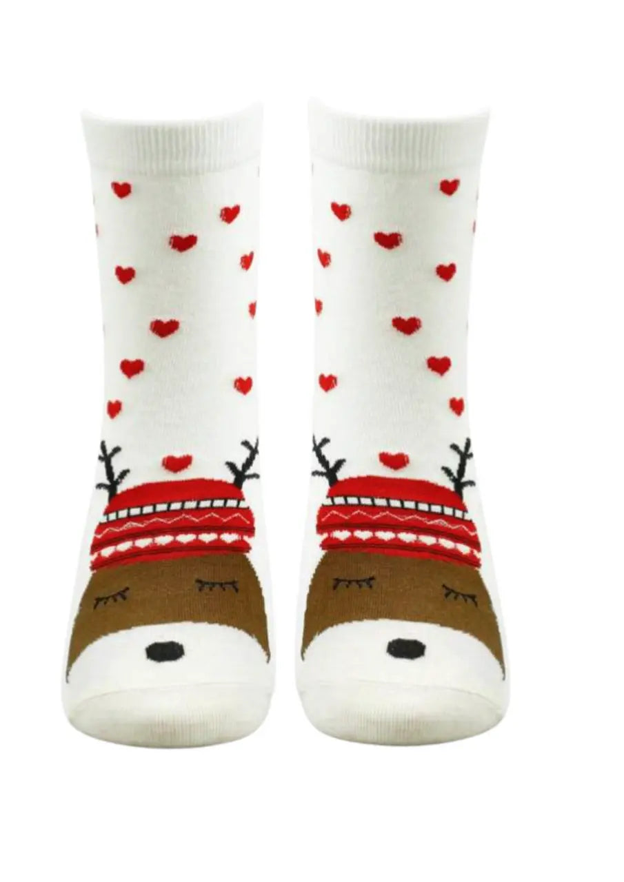 Product Details For Women's Reindeer Socks White Mid Calf Socks