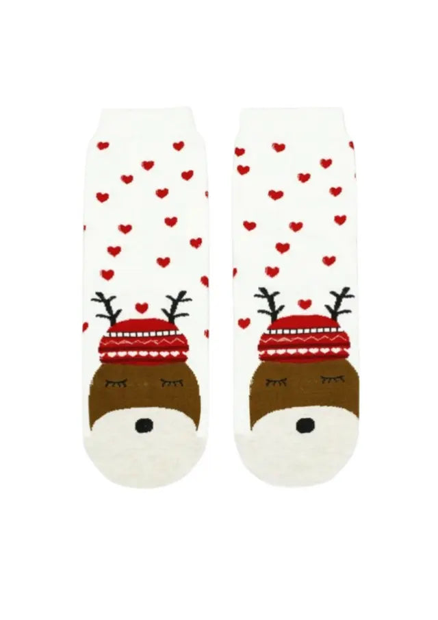 Women's Reindeer Socks, These Women's White Reindeer Socks are the perfect addition to any winter outfit. Keep your feet warm and festive with these mid calf socks featuring a playful reindeer design. Complete your holiday look with these quirky socks (and maybe a cup of cocoa!) Don't let your feet be left out of the holiday fun!